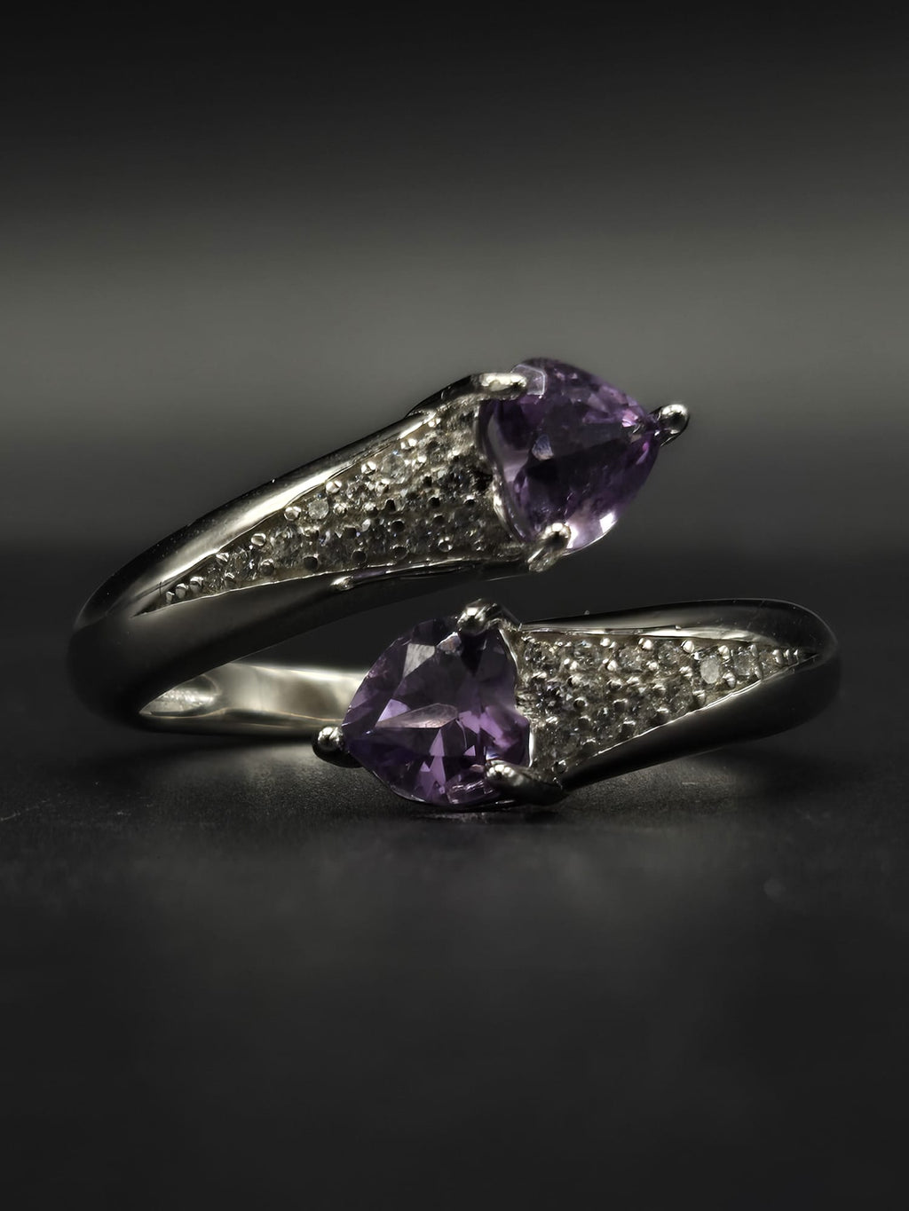 ✨ A graceful sterling silver ring plated with rhodium, featuring a natural 0.5ct amethyst gemstone accented with sparkling CZ. Known as the stone of clarity and spiritual balance, amethyst is believed to calm the mind, protect from negativity, and enhance intuition. A timeless piece with an adjustable size for a perfect every day or evening look.