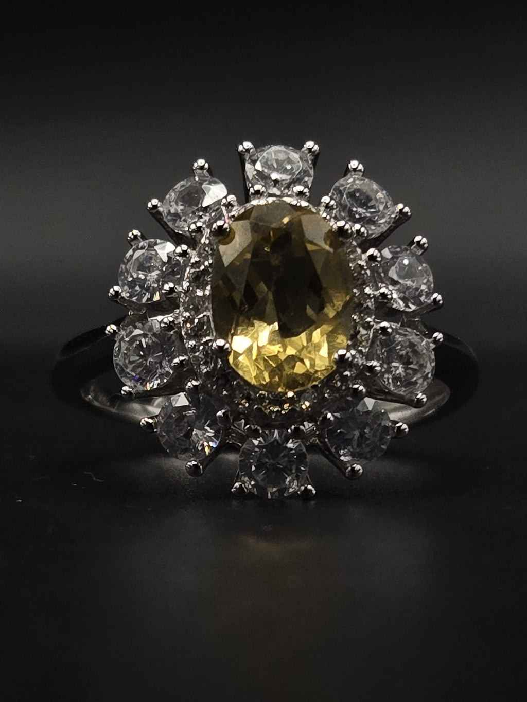 ✨ Make a statement with this dazzling cocktail ring, crafted from 925 sterling silver with rhodium plating. At its center shines a brilliant 1.05ct natural citrine, surrounded by a sparkling halo of CZ stones that capture the light from every angle. Known as the stone of joy and abundance, citrine adds both elegance and uplifting energy to your look — perfect for evening wear or adding bold charm to your everyday style.